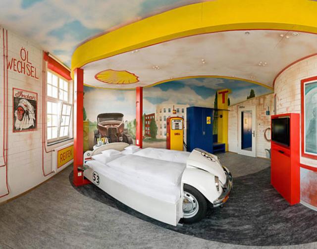 Το ξενοδοχείο V8 στη Γερμανία είναι must για όποιους είναι λάτρεις των τεσσάρων τροχών καθώς αυτοκίνητα έχουν μετατραπεί σε κρεβάτια και οι επισκέπτες μπορούν να επιλέξουν τη μάρκα που επιθυμούν.