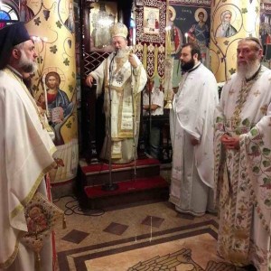Ο Σεβασμιώτατος χοροστάτησε στον Όρθρο και προεξήρχε στη Θεία λειτουργία με συλλειτουργούς του, πλην των προαναφερθέντων πατέρων και του Εφημέριου της Ενορίας και Αρχιερατικού Επιτρόπου Αιδηψίων Πρωτοπρεσβύτερου Ηλία Ευθυμιόπουλου και του Εφημερίου Αγριοβοτάνου Πρεσβύτερου Ευσταθίου Αναγνώστου.