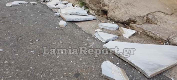 Από καθαρή τύχη δεν υπήρξε κάποιο θύμα, όταν το μεσημέρι της Πέμπτης στο κέντρο της Λαμίας, άρχισαν αν πέφτουν... μάρμαρα από όροφο πολυκατοικίας.